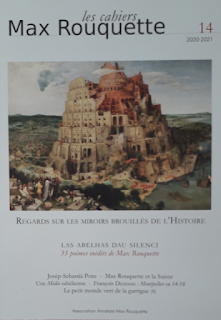 La novèla edicion d’aquesta revista ven de sortir. Es formidabla. Los mots mancan per ne dire la capitada. Es una mòstra bèla de l’ample, la riquesa e la prigondor de nòstra cultura occitana uèi e aicí. Quina demonstracion de qualitat ! Tres grandas partidas. D’en primièr d’« Agachs suls miralhs trebolats de l’istòria » amb un tèxt saberut e pivelant de Rotland Pecot. A mai 3 articles estonants de Joan Jaurés, e una descobèrta, lo jornal inedich de l’Escotaire de la vida au Clapàs en 14/18. Per la part literatura son 37 poèmas inedichs de Max amb la revirada de JF Brun. Eveniment ! Literatura tanben amb las paginas agudas dedicadas a l’òbra de 2 poètas partits l’an passat : Frederic Jaques Temple e Joan-Maria Petit. Enfin una part bèla dedicada au teatre amb l’agach agut de Joan-Glaudi Foret a l’escasença de la publication a las Letras d’Òc de 5 peças de Max Roqueta. Puèi relats e criticas d’un fum de libres, disques, espectacles e mòstras. Es un afart regalant que nos ofrís Joan Guilhem Roqueta e sa còla de fonduts de literatura e d’art. Capelada tanben au Jòrdi Souche per la concepcion grafica qu’es plaser dels uèlhs. Lo tot finís dins la natura amb la gostosa cronica etnobotanica de Josiana Ubaud. Cardabèla e salada sauvatja acaban lo menut d’una taulejada culturala magistrala.