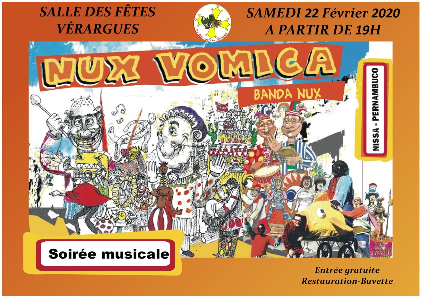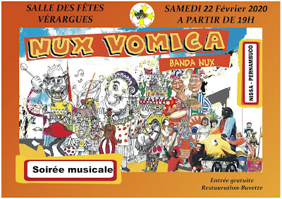 Samedi 22 février, Salle des Fêtes de Vérargues, soirée musicale et dansante autour du Carnaval avec le groupe Niçois « Banda Nux » (c’est la version Nux Vomica en acoustique).