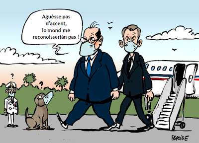 Diga ! N’ausiguèrem d’asenadas estivencas, sus un ministre qu’a dins la boca los calhaus dau Canigon, un accent que dona d’èr a las vacanças o au tresen temps de rugbí, e que pòrta la nolença de la mangisca de Maïté… (sic)