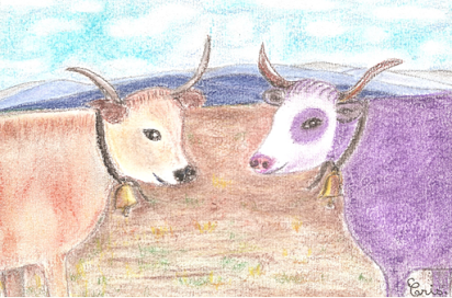 Las doas vacas rison, manjan de formatge e de chocolat, coma de costuma ! (Cristina)