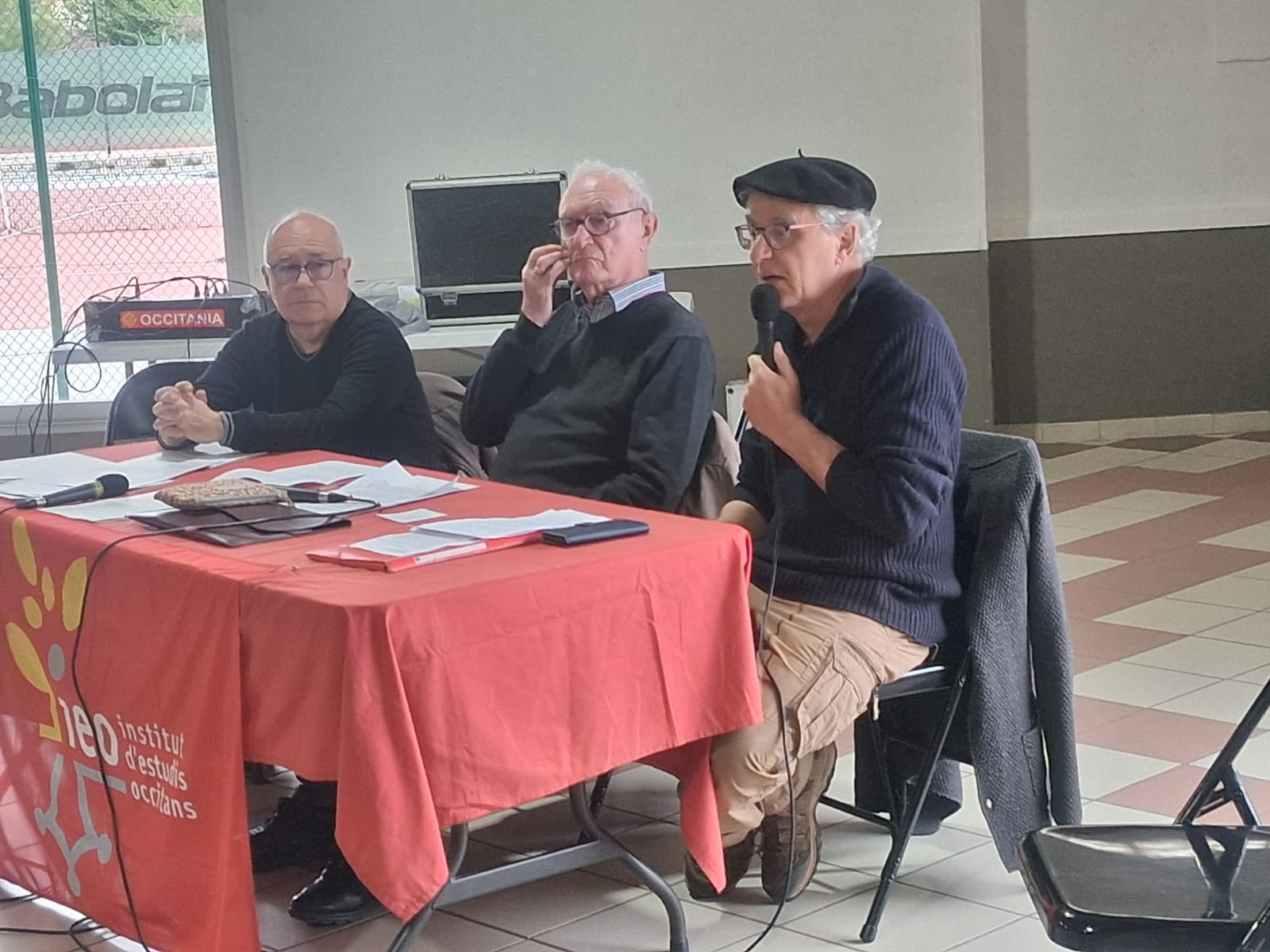 Guiu Desalase de Cabrièiras ; Catí Escamez de Besièrs, membre dau CA de l’IEO34 e Alan Huguet dau Cranc de Massilhan.