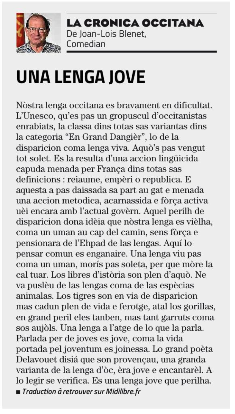 La cronica occitana de Joan Loís Blenet