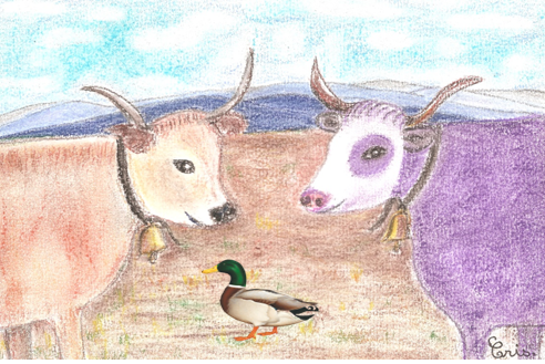 Maurèla (la vaca que ritz), Guiton (lo guit) e Milka (La vaca del chocolat)