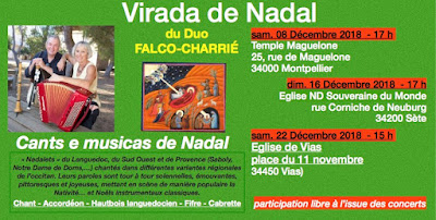 Lo Duo Falco-Charriépropausa un concèrt subretot compausat de nadalets de Lengadòc, del Sud-Oest et plan segur de Provença (Micolau Sabòli, Nòstra Dama dei Dòms).