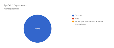 Las resultas son de las bonas coma o podètz veire en document estacat, amb una participacion benlèu mai bèla que dins nòstras AG presencialas.Gaireben 70 % dels aderents an votat; 77 dels 111 encartats; l’unanimitat, levat per l’absorcion del Camèl per quina d’unes se volguèron pas pronónciar. Lo CA vos merceja d’aver participat a l’operacion que permet a l’IEO 34 de seguir sa vida dins la legalitat, e mai d’aver adoptadas las proposicions que presentava.
