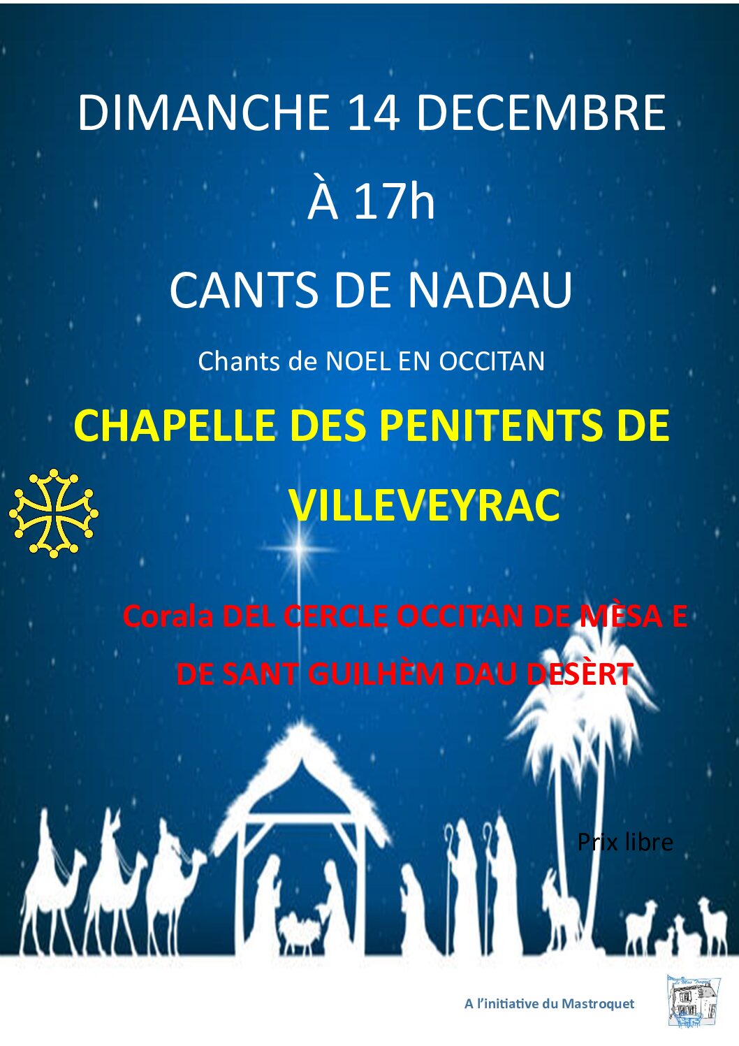 La Corala de Sant Guilhem et son chef de chœur musicien Felip Carcassés animent une passejada culturelle et musicale, ponctuée de Nadalets (chants de Noel occitans). Cette balade en français permet de décrypter l’histoire occitane de la ville (toponymie, illustres personnages…), de découvrir des poèmes et des chants occitans.