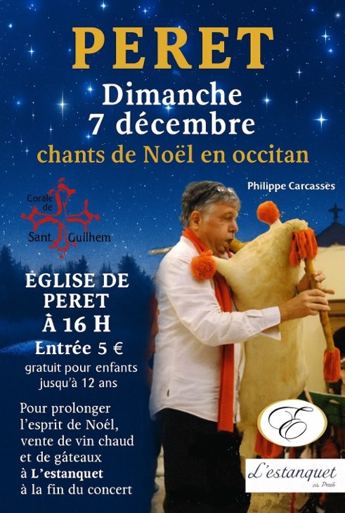 Los intruments tradicionals : bodega, frestèu, sonarèl, autbòi e acordeon sonaràn dins la glèisa de Peret lo dimenge 7 de decembre a 16h.