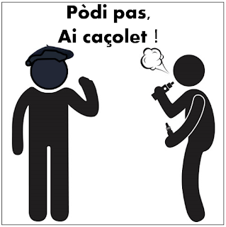 E òc, son plegats darrièr las masquetas, los entubats de l’e-canelon e las flairas nolentas que carrejavan dins son èisserva : flor de cogolerta, miugrana entredobèrta, aureta de pineda… quand l’aire de nòstras ciutats sentissiá a la bombineta desodorisanta dels comuns e que ton vesin, aquel que cargava un alen de cagadors, degalhava una fortuna per passar a la pompa faire lo plen. « L’abséncia de tabat rend con, ges de fum sens fuòc, ges de fum sens taxas ! »