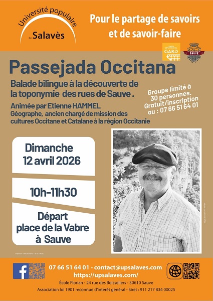 Dimanche 12 avril, l’Université populaire du Salavès propose une balade bilingue à la découverte des noms de rues, dans un pays largement écrit en occitan. Suivez Estève Hammel dans cette découverte de Sauve …