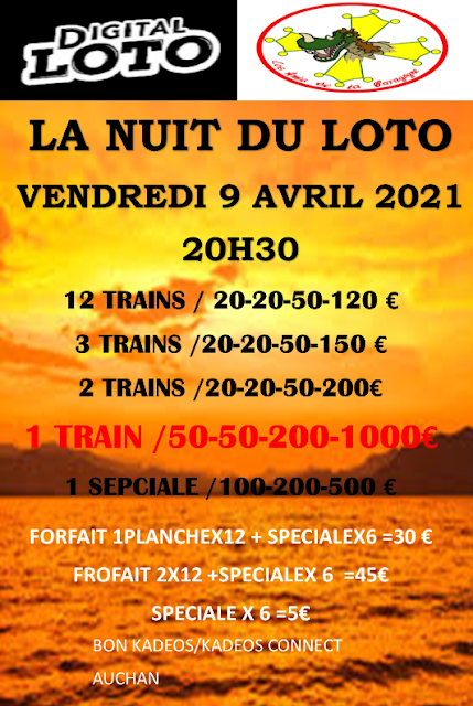 De plus, Le vendredi 9, à partir de 20h30 ce sera la nuit du loto, avec un super loto. Voir l’affiche.